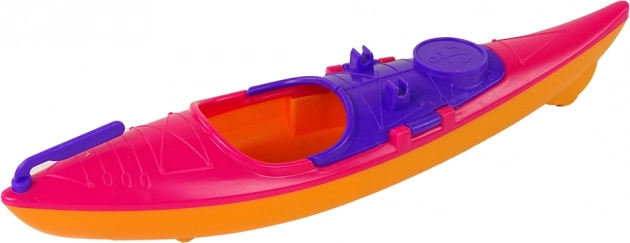 Deze plastic kajak in levendige kleuren is ontworpen voor waterplezier en biedt realistische functionaliteiten inclusief een handvat voor gemakkelijke bediening.
