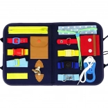 Het bord bevat een reeks elementen in verschillende vormen en texturen die helpen het tactiele gevoel te verbeteren. Inclusief verschillende soorten sluitingen, zoals knopen, gespen en rijgen, waardoor kinderlijke creativiteit wordt gestimuleerd en ze zelfstandigheid ontwikkelen bij het uitvoeren van dagelijkse taken.