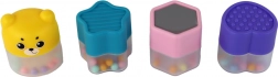 Vier verschillende openingen voor het sorteren van vormen en kleuren, ter bevordering van het herkennen van vormen en kleuren.
