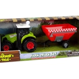 De tractor is uitgerust met een afneembare aanhanger waarop kinderen verschillende voorwerpen kunnen vervoeren, zoals goederen. Geluidseffecten en verlichting versterken de beleving van het rijden op de boerderij.
