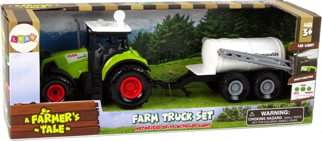 Ontdek de leuke wereld van het platteland met een realistische kinderspeelgoedtractor met aanhanger. De set biedt motorische beweging, licht- en geluidseffecten (achteruitrijden, toeteren, wegrijden) en een duurzame kunststof uitvoering. Dankzij de eenvoudig afneembare aanhanger en het openende element genieten kinderen van creatief spel binnen en buiten. Batterijen zijn inbegrepen, het speelgoed voldoet aan de normen CE en EN71 en is geschikt vanaf 3 jaar.