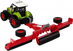 De handmatige aandrijving maakt rijden vooruit en achteruit mogelijk, terwijl drie geluidsmodi (achteruitrijden, toeteren, wegrijden) en ingebouwde verlichting het spel extra realistisch maken. De woeler kan eenvoudig aan de tractor worden gekoppeld en zijn bewegende onderdelen bootsen echt landbouwgereedschap na.