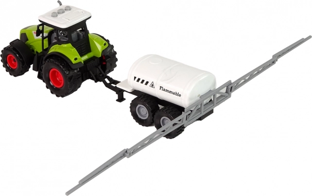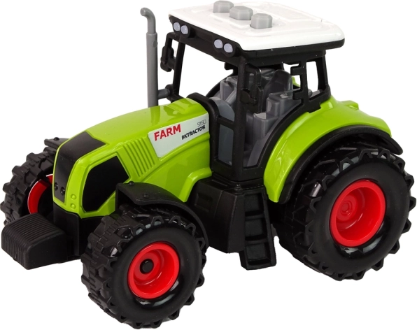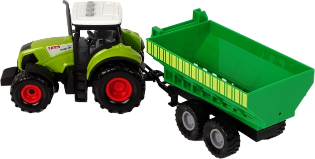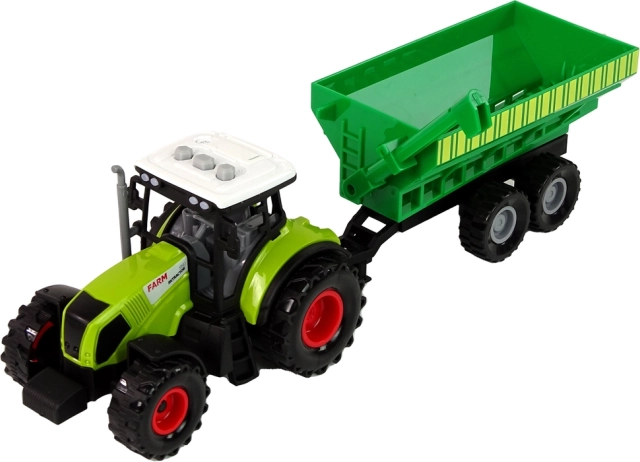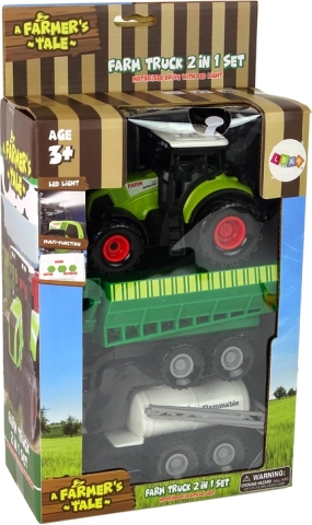 De speelgoedtractor met aanhangwagen en landbouwmachines biedt een complete mini-boerderij! Dit realistische model laat kinderen zien hoe het werk op een landbouwboerderij werkt. De tractor heeft drie functionele knoppen op het dak van de cabine die motorgeluid, achteruitrijden en claxon bedienen en tegelijkertijd de LED-lichten activeren.