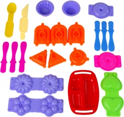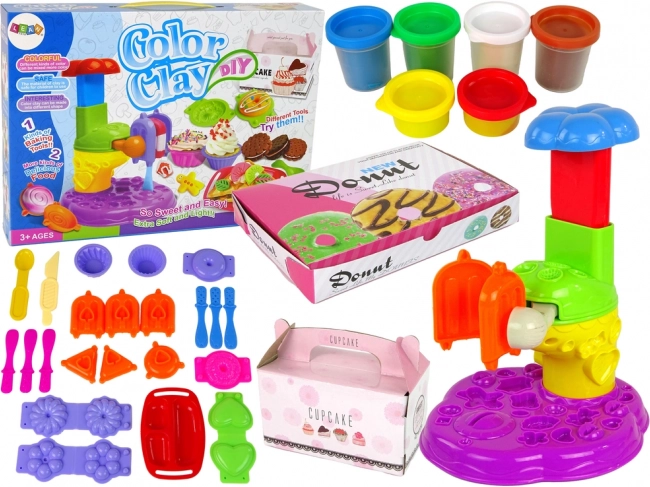 Heb je een kleine patissier in huis? Deze speelse klei-set verandert de kinderkookhoek in een kleurrijke banketbakkerij. De robuuste pers met verwisselbare opzetstukken perst klei in de vorm van toppings, linten en decoraties, en de zijvormpjes maken tientallen zoete motieven. Kinderen “bakken” eenvoudig koekjes, maken bolletjes ijs en ijslolly’s op een stokje.