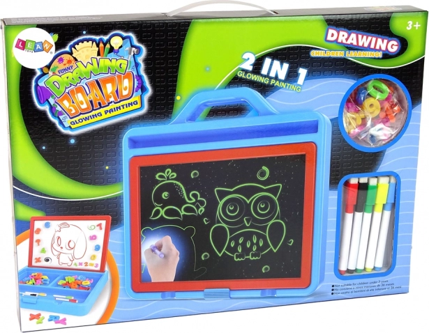 Dit kinderbord stimuleert de fantasie en het leren op een speelse manier. Met de LED-stift maken kinderen op het speciale paneel stralende tekeningen die in het schemerdonker echt tot leven komen. De andere zijde dient als whiteboard voor schrijven en tekenen met uitwisbare stiften, zodat ze letters, cijfers en de eerste sommen steeds opnieuw kunnen oefenen.