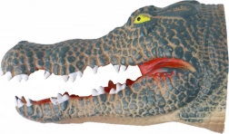 Deze grijze krokodillenhandpop valt op door zijn realistische uitstraling – van de getextureerde schubben tot de opvallende gele ogen. Dankzij het zachte, flexibele rubber voelt hij prettig aan en maakt hij natuurlijke bewegingen van bek en kop mogelijk, zodat elk optreden levendig en leuk is.