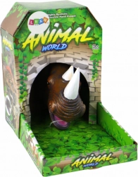 Deze neushoorn-handpop oogt bijzonder realistisch: hij heeft opvallende zwarte ogen, zorgvuldig gevormde hoorns en een getextureerd oppervlak dat aan huid doet denken. Het zachte rubber ligt prettig in de hand en maakt het eenvoudig om kaken en mimiek te bewegen, zodat elk verhaal verandert in levend theater.