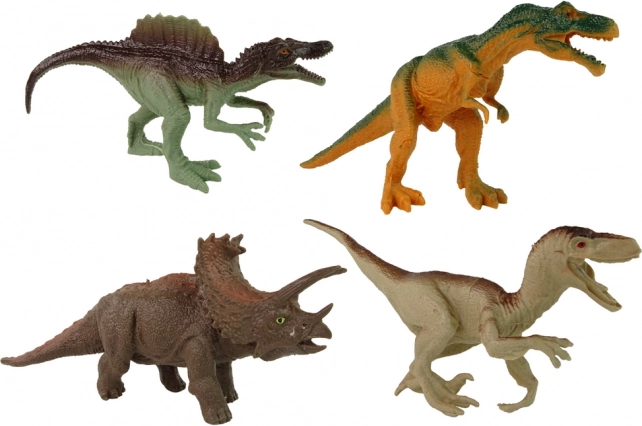 Deze set is ideaal voor kleine liefhebbers van prehistorische wezens. Hij bevat vier realistische figuren van verschillende dinosaurussoorten: Triceratops, Velociraptor, Tyrannosaurus en Spinosaurus. Elk van hen valt op door een unieke kleuring en indrukwekkende afmetingen, wat het spel verrijkt.