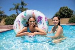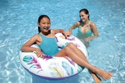 Deze opblaasbare zwemring is een uitstekende keuze voor kinderen vanaf 9 jaar en volwassenen (tot 80 kg) die op zoek zijn naar comfortabele en veilige ondersteuning tijdens waterpret. Twee geïntegreerde handgrepen bieden een zekere grip bij het in het water springen en tijdens het ontspannen op het water.
