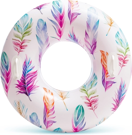 Het duurzame materiaal met een dikte van 0,25 mm weerstaat dagelijks gebruik bij het zwembad en aan zee. Dankzij de tropische motieven met palmen of flamingo’s trekt de ring de aandacht en geeft hij je zomerse uitrusting een frisse stijl.