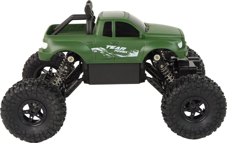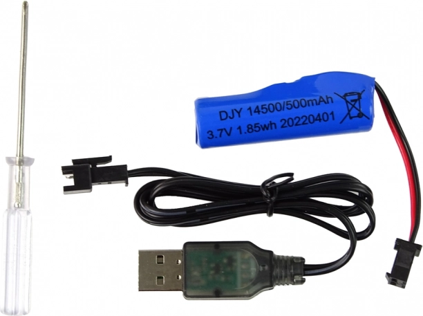 In de set vind je een kleine schroevendraaier om de meegeleverde 3,7V accu op de auto aan te sluiten. De oplaadkabel voor de accu zorgt bovendien voor langdurig speelplezier. De afstandsbediening met afmetingen 15 x 18 x 6 cm (werkt op 2x 1,5V batterijen - niet inbegrepen) biedt volledige controle. De auto beweegt volgens de aanwijzingen van de afstandsbediening (vooruit, achteruit) en de bandvormige knop op de controller maakt nauwkeurig sturen naar links en rechts mogelijk.