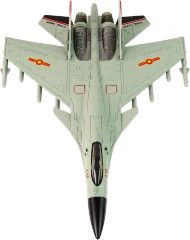Het model is uitgevoerd in authentieke grijze kleur, wat bijdraagt aan de realiteit van een echt jachtvliegtuig. Zowel kinderen als volwassenen zullen onder de indruk zijn van zijn geweldige uitstraling. Rubberen wielen zorgen voor een soepele beweging op verschillende oppervlakken.