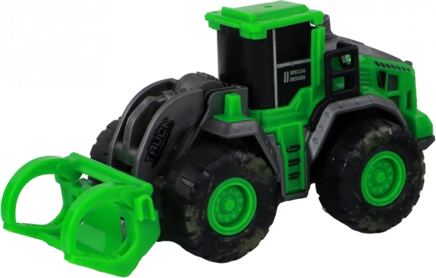 Elke tractor is uitgerust met verschillende functionele elementen zoals een houtgrijper of een grasmaaier, wat de speelmogelijkheden vergroot.