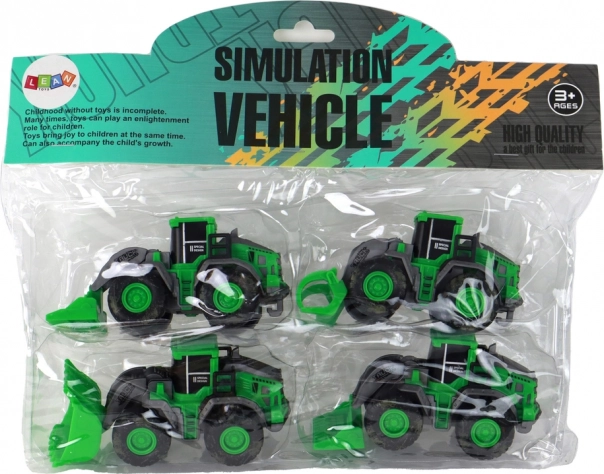 Ontdek de set van vier groene tractors die garant staat voor eindeloos plezier. Elke tractor heeft een realistische uitstraling geïnspireerd op echte landbouwmachines, wat elke jonge boer zal bekoren.