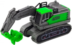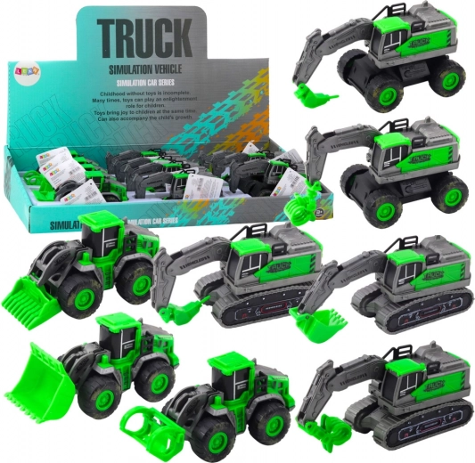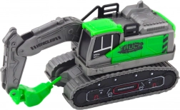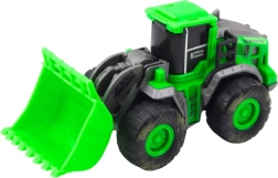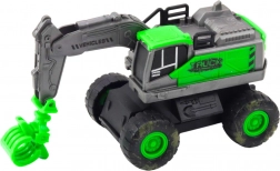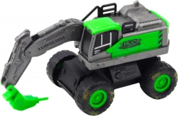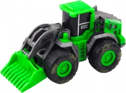 De mini-bouwmachine in een aantrekkelijke groen-grijze combinatie is ideaal voor kleine techniekliefhebbers. Dankzij de frictieaandrijving hoef je het voertuig alleen maar een zetje te geven en rijdt het uit zichzelf vooruit, wat de realistische speelbeleving versterkt zonder batterijen. De beweegbare arm en werkende bak maken het mogelijk om kleine voorwerpen te scheppen, verplaatsen en te kiepen.
