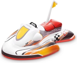 De compacte body maakt snel opblazen en leeglaten mogelijk en is gemakkelijk mee te nemen. Het design met Wave Rider GP500-motief en kleine vlag spreekt elke jonge rijder aan en stimuleert fantasierijk spel in het zwembad en op een rustige wateroppervlakte.