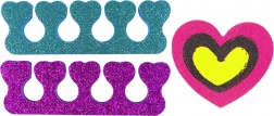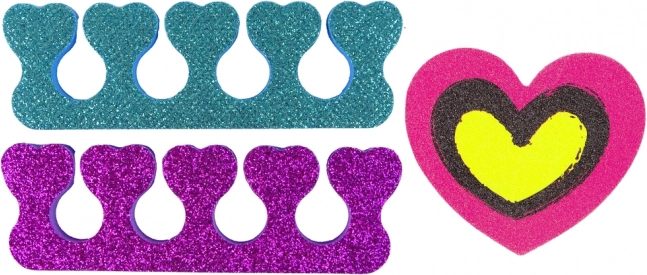 Twee schuimen teen-/vingerspreiders en een hartvormige vijl maken de voorbereiding eenvoudig en helpen een strak resultaat zonder vlekken te bereiken.