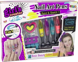 Gebruik is eenvoudig: vorm de nagels met de vijl, breng kleur aan en teken met de stiften fijne patronen, stippen of lijntjes. Voor extra effect voeg je stickers of versieringen toe en creëer je een originele stijl die elke dag in de smaak valt.