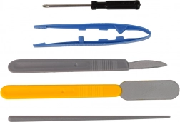 - microscoop, pincet, kant-en-klaar preparaat, 2 objectglaasjes, 2 reageerbuisjes, doosje, schroevendraaier