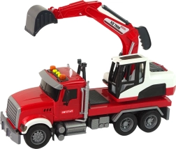 Deze gedetailleerde set bevat een trekker met aanhanger en een volwaardige graafmachine. De cabine van de graafmachine draait 360° voor gemakkelijk bereik op de “bouwplaats”; de bak is in hoogte en hoek verstelbaar voor graven, scheppen en verplaatsen van materiaal. Kinderen genieten van realistisch spel dankzij de licht- en geluidseffecten die worden bediend met drie knoppen op het dak.
