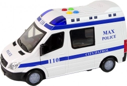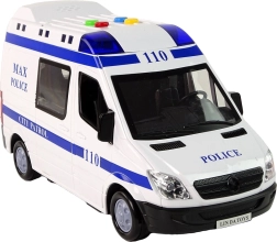 Dit gedetailleerd uitgewerkte politiebusje bootst een echt voertuig trouw na. Kinderen zullen enthousiast zijn over de combinatie van lichten en geluiden, bediend met kleurige knoppen op het dak, en de wrijvingsaandrijving die na het terugtrekken en loslaten in actie schiet. De voor- en achterdeuren die open kunnen maken het inladen van bemanning en uitrusting eenvoudig.