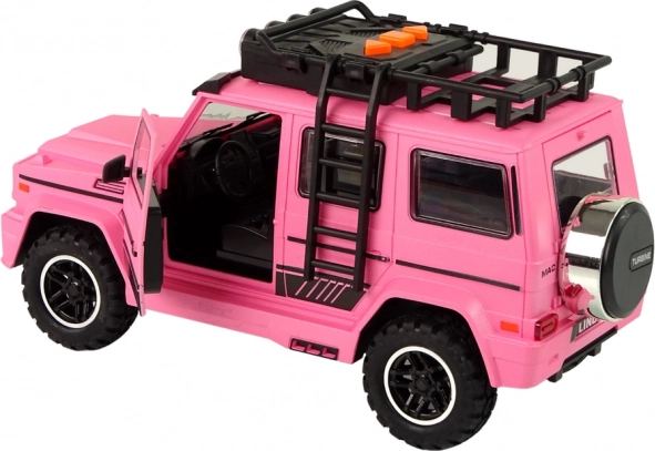 De auto heeft een reservewiel dat op de achterklep is geplaatst, wat bijdraagt aan de authenticiteit en het offroad-karakter van het voertuig.