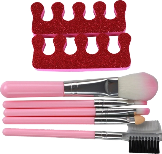 De set bevat roze muiltjes met hak, zodat het kind zich elegant kan voelen. De set bevat 5 verschillende make-upkwasten, waarmee je diverse make-upeffecten kunt creëren.