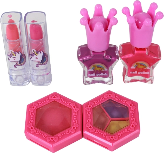 Deze schattige make-upset voor kinderen in een koffer met een eenhoorn is ideaal voor kleine liefhebbers van cosmetica en make-up. Het stimuleert hun fantasie en creativiteit en laat hen experimenteren met verschillende make-upstijlen en nageldecoraties, terwijl ze zich vermaken met rollenspel.