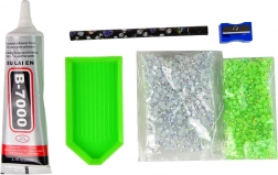 De set bevat alle benodigde tools en steentjes om je eigen diamantkunst te maken.
