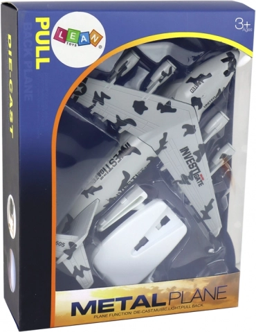 Interactieve lichten en geluiden creëren de sfeer van een echte start, en de vliegwiel- (pull-back) aandrijving zorgt voor extra actie op de grond. De praktische standaard maakt het mogelijk het vliegtuig tentoon te stellen wanneer er niet gespeeld wordt – ideaal als decoratie en verzamelobject.