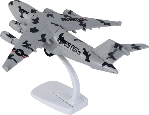 De grijze camo-uitvoering met de opdruk UNITED en vier motoren geeft het model een authentiek militair karakter – ideaal om mee te spelen en om neer te zetten.