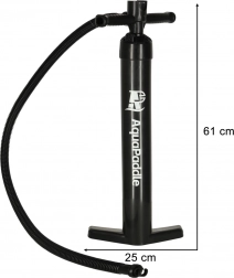 Het dubbelwerkende mechanisme blaast lucht bij zowel de op‑ als neergaande slag en bespaart tijd en energie. De T‑greep zorgt voor een comfortabele grip, de lange slang vergemakkelijkt de handling en de dubbele voetsteunen houden de pomp stabiel op zijn plaats. De robuuste kunststof constructie is licht en geschikt om mee te nemen.