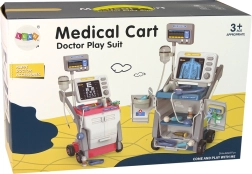 Verrijdbare werkplek, stethoscoop op batterijen, spuit, schaar, decoratieve stickers en overige medische accessoires