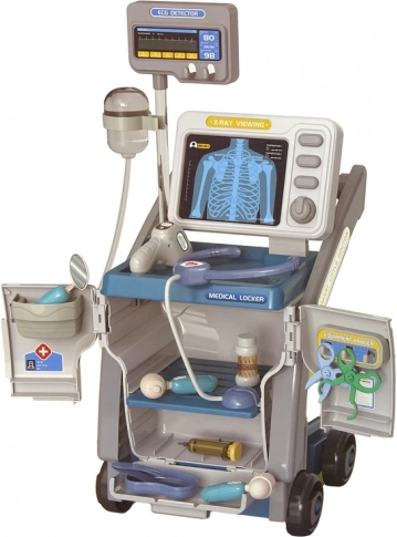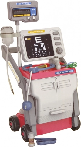 - Verrijdbare werkplek, stethoscoop op batterijen, spuit, schaar, decoratieve stickers en overige medische accessoires