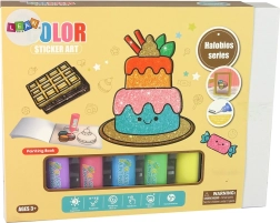 Ontdek de creatieve wereld met onze ongeëvenaarde set die diverse thematische stickers omvat die doen denken aan heerlijke taarten, macarons en chocolades. Kinderen kunnen kleuren en creëren naar eigen fantasie. Details en kleuren zijn aan jou; met de meegeleverde 8 kleuren en glitters geef je glanzende schoonheid aan je glazendecoraties.