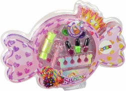 Betoverende set voor nageldecoratie en make-up, verpakt in een uitzonderlijke verpakking in de vorm van een snoepje. Ideaal cadeau voor jonge liefhebbers van make-up, cosmetica en creatieve pret.