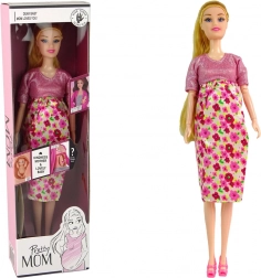 Deze prachtige zwangere pop met lang blond haar en een schattige roze jurk met bloemmotief brengt magie en stijl in het spel. Het buikje is eenvoudig te draaien naar een platte buik. Ideaal voor kleine dames die van poppen en het bedenken van betoverende verhalen houden.