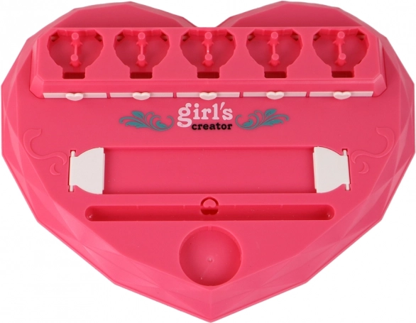 Het roze hart biedt zowel een werkvlak als vakjes voor steentjes en kralen. Alles is overzichtelijk geordend en altijd binnen handbereik.