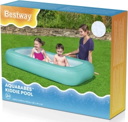 Het opblaasbare zwembad BESTWAY Aquababes is een ideale keuze voor de eerste waterspelletjes in de tuin. Dankzij de zachte, met lucht gevulde bodem is zitten en kruipen voor kinderen comfortabel en veilig, terwijl de brede omtrekring de vorm behoudt en stabiliteit biedt.