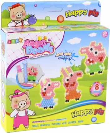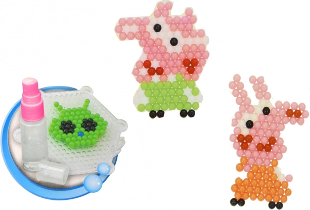 Creatieve set waterkralen voor kleine kunstenaars met 8 heldere kleuren, twee sjabloonplaten (vierkant en zeshoek), een sprayfles en accessoires voor eenvoudig knutselen. Alleen met water besproeien en de kralen hechten zonder strijken. Een geweldige keuze voor het ontwikkelen van fijne motoriek, fantasie en het maken van hangers en schattige varkensmotieven.