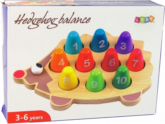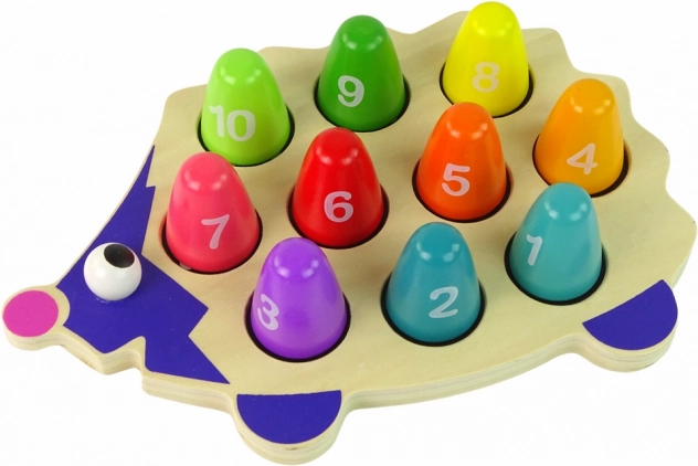 Vrolijk houten egeltje met 10 genummerde, gekleurde pinnetjes maakt leren spelenderwijs. Kinderen oefenen tellen, fijne motoriek en hand-oogcoördinatie. Compacte afmetingen, hoogwaardig hout en CE/EN71-certificering maken het een uitstekende keuze voor kinderen vanaf 3 jaar.
