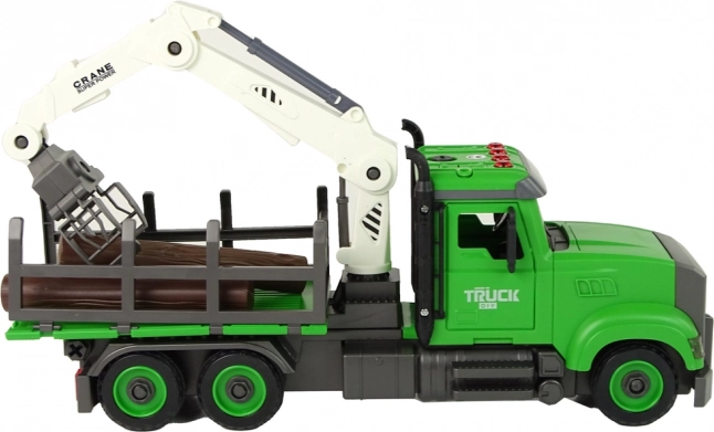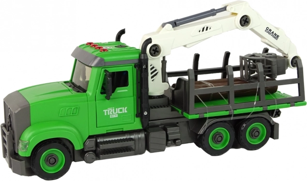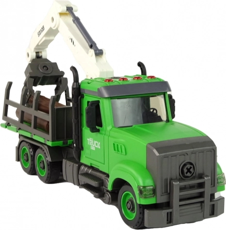 Deze gedetailleerde bosbouw houttransportwagen neemt kinderen mee in de wereld van echte machines. Deuren die open kunnen, bewegende onderdelen en een draaibare witte grijper maken het eenvoudig om boomstammen te laden en te lossen, terwijl de frictie-aandrijving en de grote wielen elk “terrein” in de kinderkamer aankunnen. Gekleurde lampjes en vier verschillende geluiden via de knoppen versterken de realistische spelbeleving.