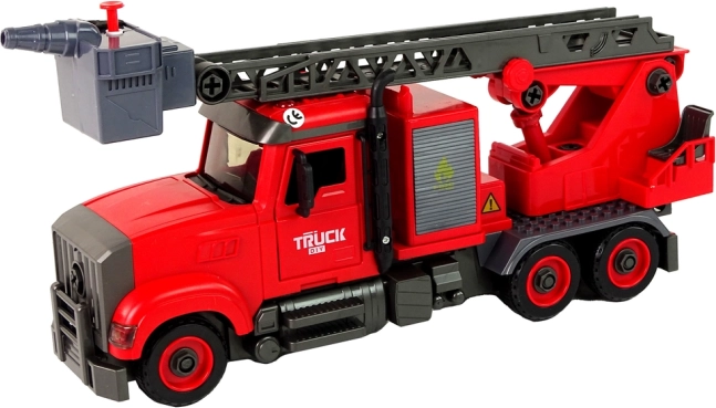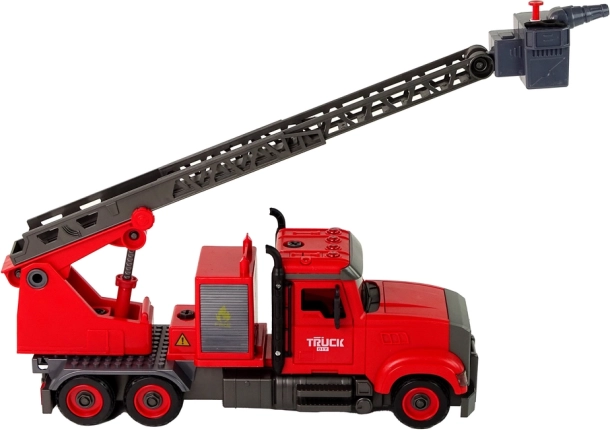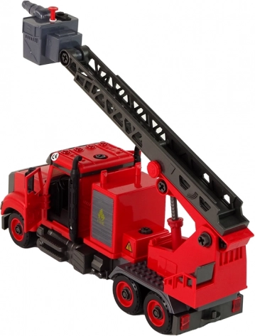 Deze realistische brandweerauto van duurzaam plastic verrast met details zoals openende deuren, een draaibaar en uitschuifbaar ladderplatform en een watertank voor authentiek “blussen”. Dankzij de frictie-aandrijving hoef je de auto alleen maar een duwtje te geven en hij schiet in actie. Lichten en 4 geluideffecten, geactiveerd door rode knoppen op het dak, geven het spel spanning en realisme.