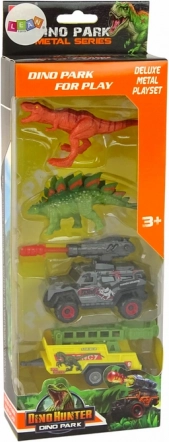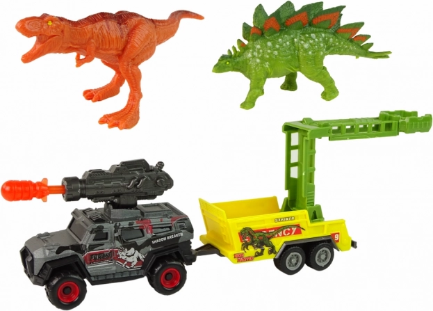 - 2 dinosaurussen, terreinwagen met raketwerper, aanhanger met kooi, originele verpakking