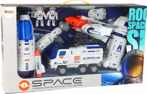 Het centrale element van de set is een grote ruimteraket in blauw-wit. Hij heeft zorgvuldig uitgewerkte details, waaronder raketmotoren, toegangsdeuren en cabinevensters. Boven op de raket is via connectoren een ruimteschip bevestigd. Het ruimteschip is ook blauw-wit en heeft een te openen cockpit voor astronauten.