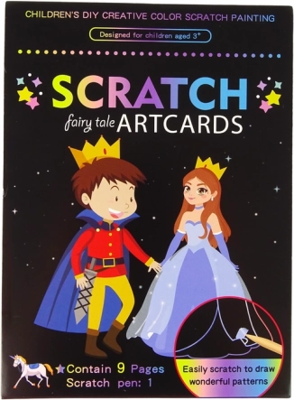 Ontdek een leuk en creatief set voor kleine kunstenaars: kras-kleurplaten met koninkrijksthema. Kras eenvoudig met de houten stylus de zwarte laag weg en onthul kleurrijke illustraties. Ideaal formaat voor kinderhanden, hoogwaardige afwerking en veiligheid bevestigd door CE-certificering en EN71-norm.