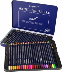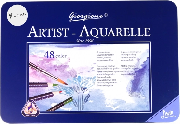 De set van 48 aquarelpotloden in een elegant metalen etui biedt intense kleuren en makkelijk uit te wassen met water. De potloden van 17 cm gebruik je als gewone potloden en vervolgens creëer je met een natte penseel een indrukwekkend aquareleffect. De compacte verpakking is ideaal voor onderweg en voor school.
