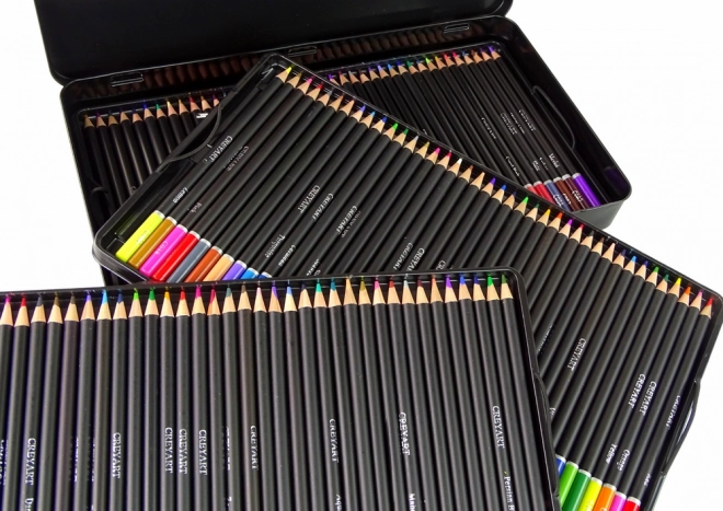 Set van 120 artistieke kleurpotloden in een metalen etui. 3 lagen, zwarte lak, lengte 17 cm. CE- en EN71-certificering. Ideaal cadeau voor kinderen vanaf 3 jaar en volwassenen.