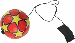 Leuke kinder voetbalbal van duurzaam PU aan een elastische band met klittenband voor eenvoudig bevestigen en het trainen van terugspringen. Compacte diameter 6 cm, opvallende rode kleur met sterretjes en veilige constructie zorgen voor buitenspeelplezier én binnenpret voor kinderen vanaf 3 jaar.