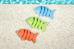 De visjes zijn zo ontworpen dat ze naar de bodem van het zwembad zinken, kinderen aanmoedigen om te duiken en hun zwemvaardigheden te verbeteren.